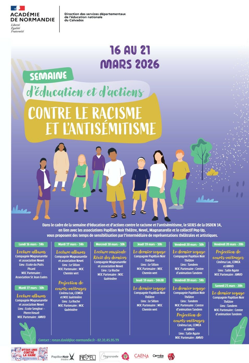 Quatre films ont été sélectionnés en amont sur cette thématique. Nouveau ; Ton français est parfait ; Des tresses ; AOC. Les projections ont été organisées dans le cadre de cette semaine de sensibilisation (initiative du  SDJES de la DSDEN 14), en partenariat avec le Cinéma le Lux et les MJC Guérinière et AMVD.