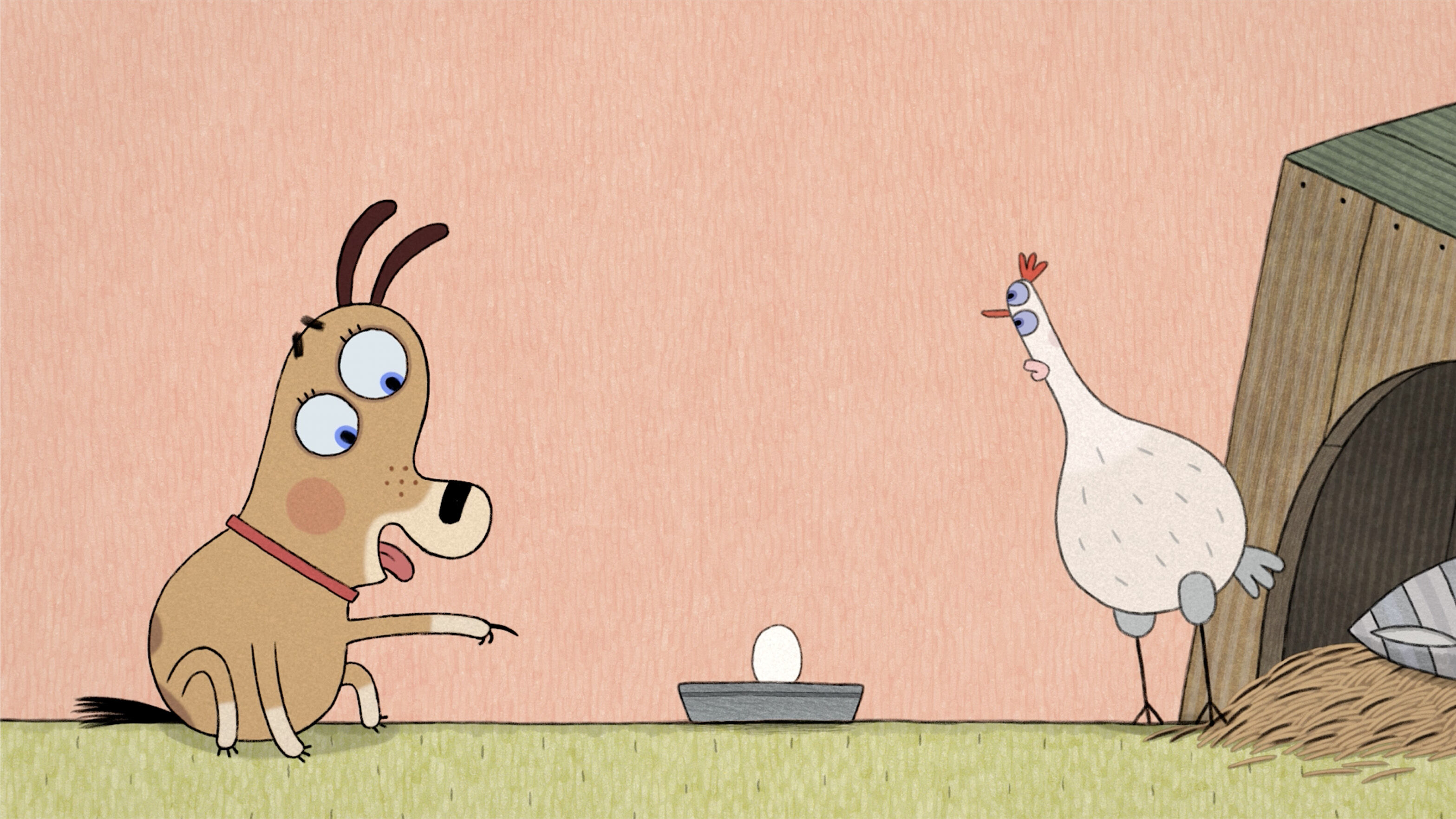Le chien de Léna trouve un œuf dans sa gamelle. Il sait qu’un poussin ne peut éclore que si une maman poule le couve ! Inquiet, il part alors à la recherche d’une solution…